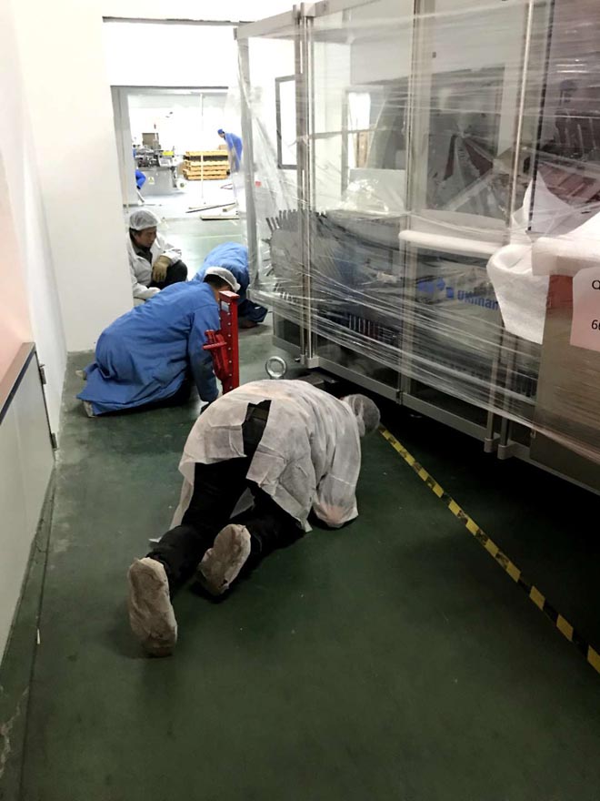 青岛黄海制药进口设备安装,汽垫搬运现场